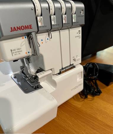 Pre-owned Brand NewJanome Serger Machine - with Rolling Trolley Included. Only used twice. Excellent Condition. FREE DELIVERY (shipping optional) 2,3, and 4 thread convertible Easy lay in threading...