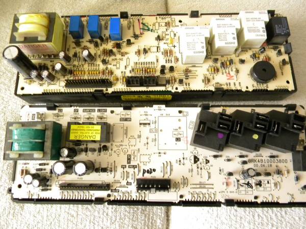 You will get 2 control boards and the installation instruction sheet for the "new" board that fit the same oven. There is one "used" and one new board The used one (that still works) is the original ROBERTSHAW part WB27T10077. The new one is the replacement part made by SANYO part WB27T10216. The used one has the "3 white cubes" and the SANYO replacement board has "3 black cubes" and retails for $300. Reply by calling show contact info