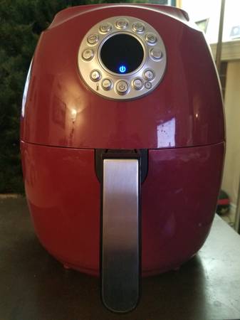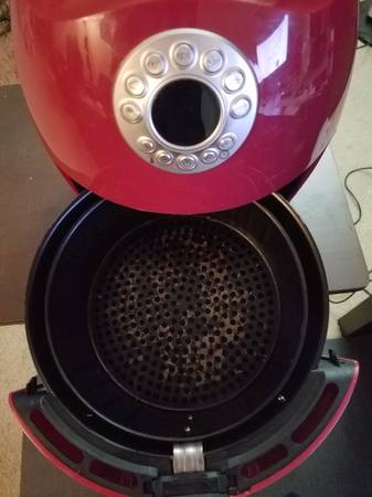 Cook's Essentials Air Fryer I believe this is a 3.4-qt but I don't have the manual so I'm not sure Basket shows some wear from use and cleaning Unit is in good working condition Color is dark red or...