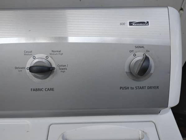 $225 cash only. No Venmo. Kenmore good condition 600 series, see photos Works great! Very good condition natural gas dryer. Includes: With aluminum duct stretches up to 6 feet. With Flexible gas...