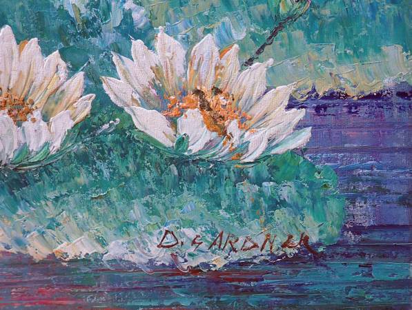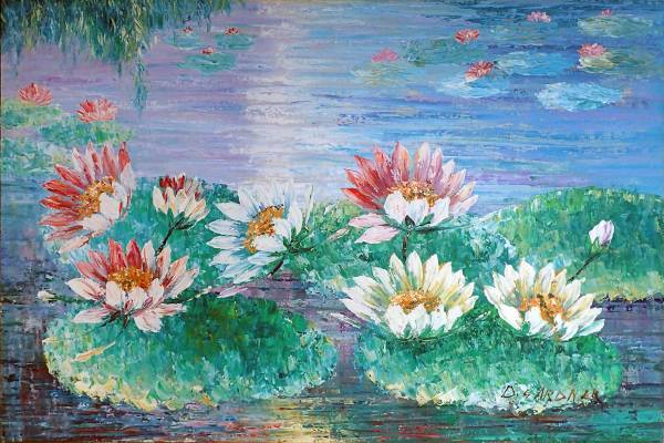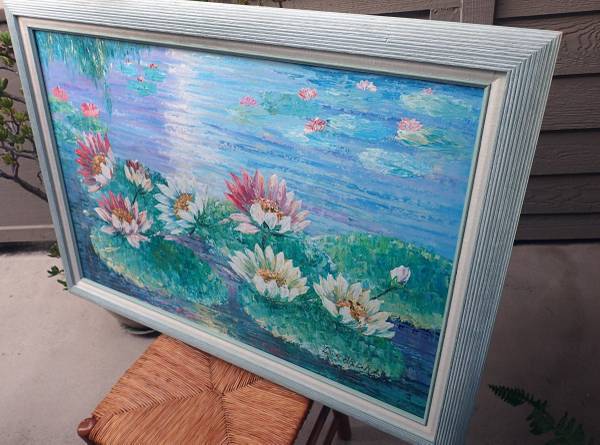 Beautiful Oil Painting "Water Lilies". Great condition - see close-up photos. Canvas size = 36" x 24" Nice Frame. $45.00