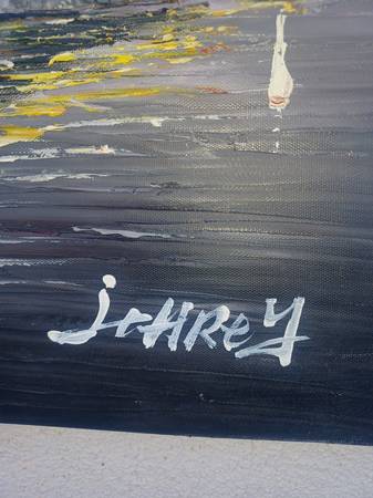 This is a cool original oil painting on canvas, slightly abstract with the signature of the artist..