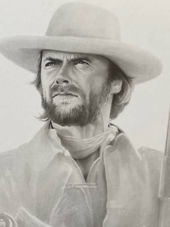 Clint Eastwood charcoal drawing signed and dated by Gary Saderup. Josey Wales. Measures 24” x 20”. Great condition