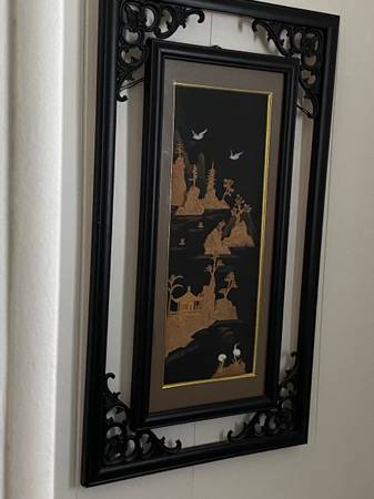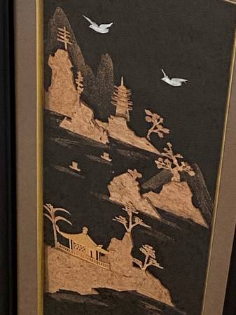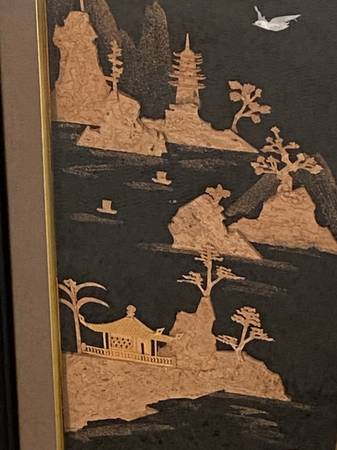 Vintage Chinese Cork Pic. Images are made of cork. Measures 25” tall x 14.5” wide