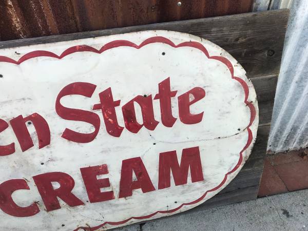 Vintage antique Ice cream sign as pictured. $350.00 76o.72o.145six.