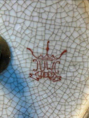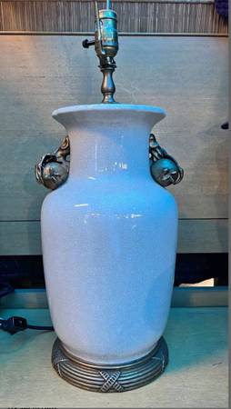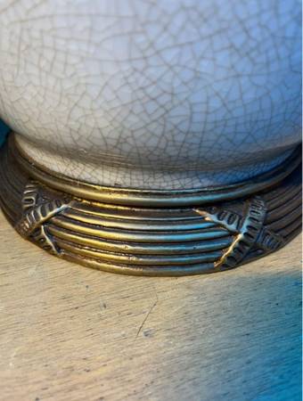 Vintage - MCM - Mid Century Porcelain Lamp by United Wilson 1897 Cracked glazing Ormolu base and ornamental figs Antique Brass Fittings and Finial Early 1980’s Excellent condition, zero damages ....