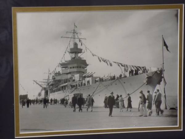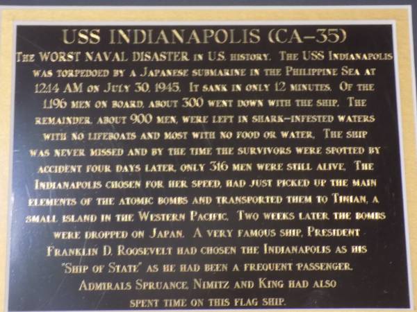This is a professionally framed presentation of the USS INDIANAPOLIS CA-35 Cruiser. It features an 8" x 10" black & white reproduction photo acquired from the San Diego historical society of the Indy at the pier at 32nd Street Naval Station in San Diego in the 1930's. This is a rare photo. Also featured is the ORIGINAL Liberty card of MM1st Class B.W. Powell signed by R.C. Davis, Commander and Executive Officer of the Indianapolis. Also featured is a 6" x 6" engraved metal plate that describes the Indianapolis. The framing is of a beautiful mahogany wood with acid-free double matting and plexiglas with UV protection. All of this is premium picture framing that will outlast its owner. This is a VERY UNIQUE presentation not seen anywhere else in the United States. The custom framing is worth $250 alone. This is in mint condition! Will entertain REASONABLE offers.