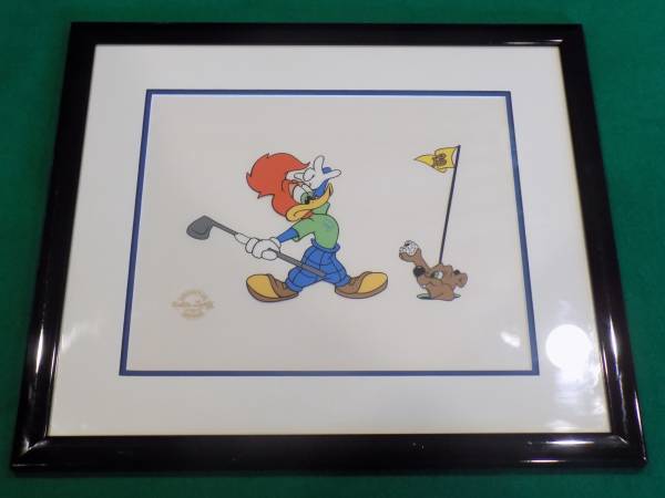 The "WOODY WOODPECKER" ANIMATION SERI-CEL" is a certified sericel produced in 1997 by Walter Lantz Productions, featuring the iconic character Woody Woodpecker from the Western Animation tradition. This original sericel is framed and part of the Walter Lantz/Woody Woodpecker franchise, showcasing fine art management by the Fine Art Management Corporation. The sericel captures the essence of Woody Woodpecker in the 1990s era of animation, making it a collectible piece for fans of animation art and merchandise. It measures 18" x 16" x 1".