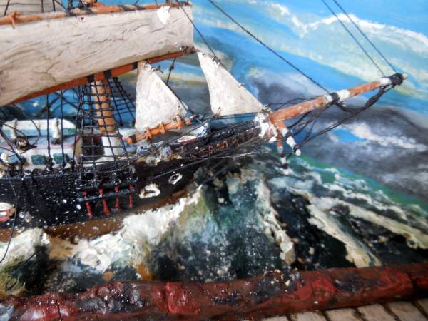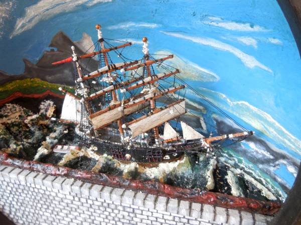 Antique Folk Art Shadow Box Diorama Masted Sailing Ship & Rigging 1892