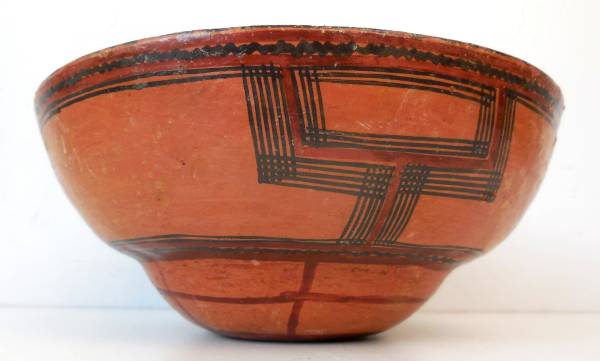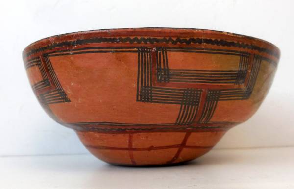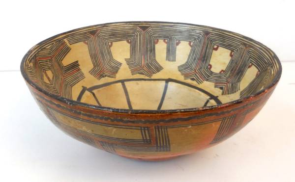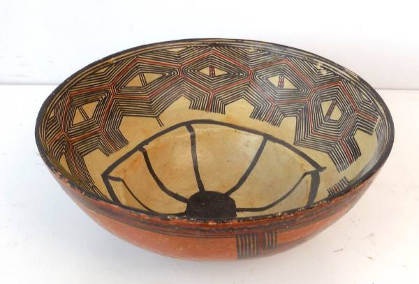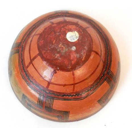 Here is an Antique Indian Mucawas Polychrome Pottery Bowl once on display in a museum.