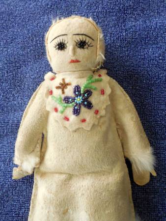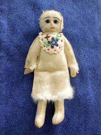 Old Native American Indian leather doll with beads 10". May be Inuit or Tlingit.
