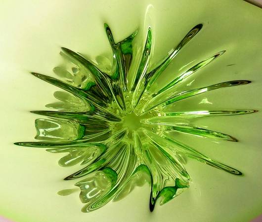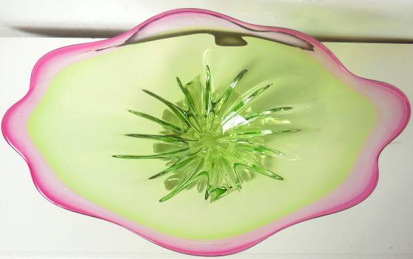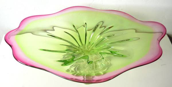 Elegant MURANO Italy Handmade Art Glass Wave Ruffle Bowl Red Green