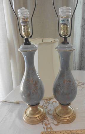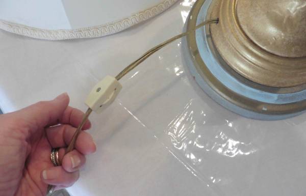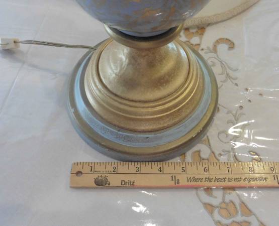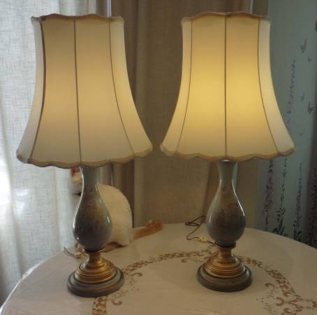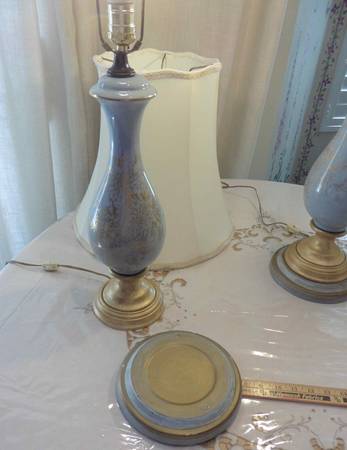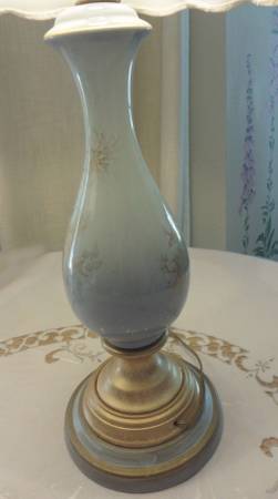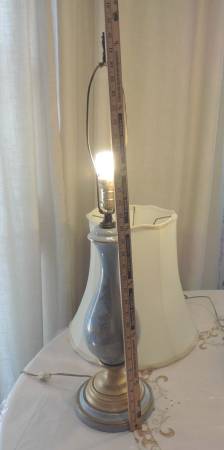 Base is china and wood, the base lift is ceramic, Shades are silk.