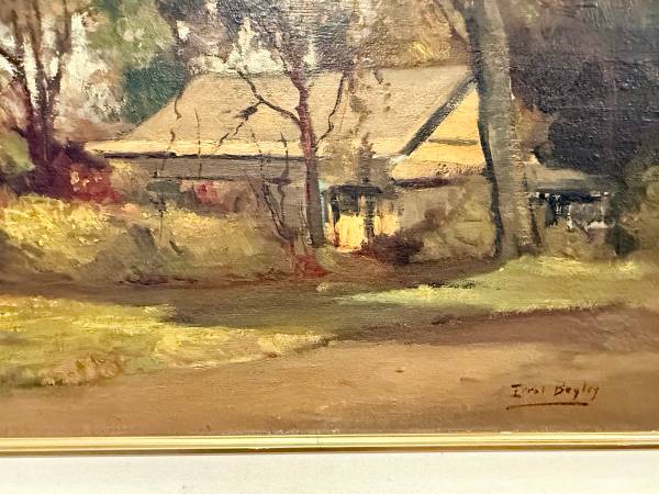Stunning Farmhouse Landscape Oil Painting by world renowned South African Artist. Painting Measures 28" x 34" framed, and 18" x 24" unframed. Oil on Board.
