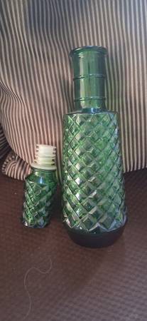 Glass Diamond Cut Emerald Decanter Wine Bottle. In great condition. Used it as decoration. $20