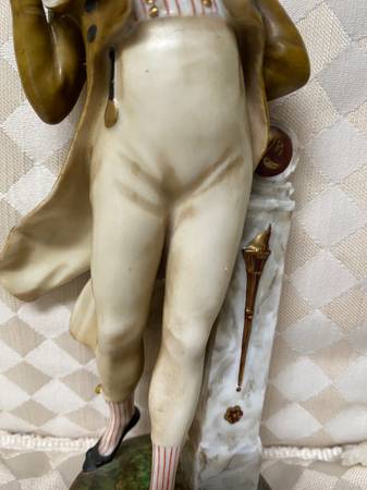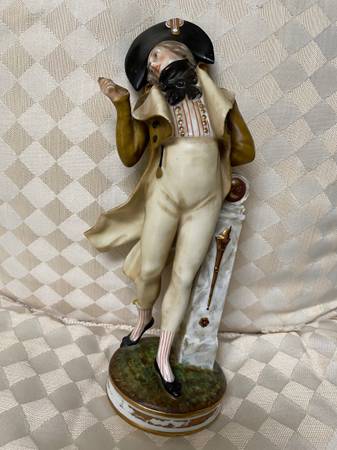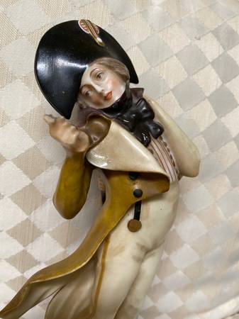 Old porcelain statue. Think it’s Napoleon. Measures 9” tall x 4” at widest point. Finger is missing