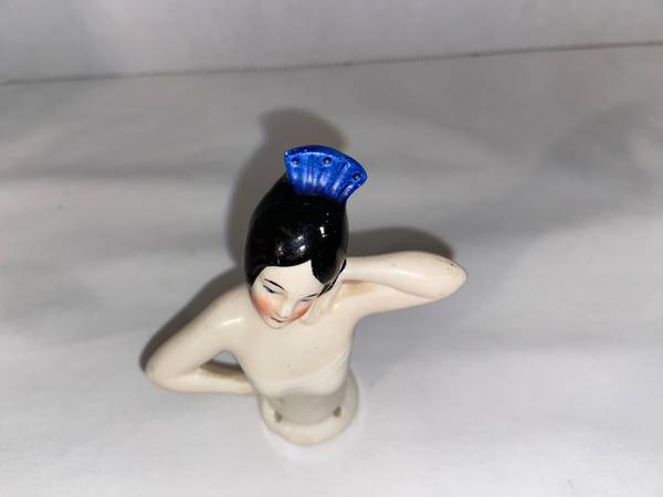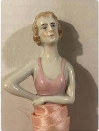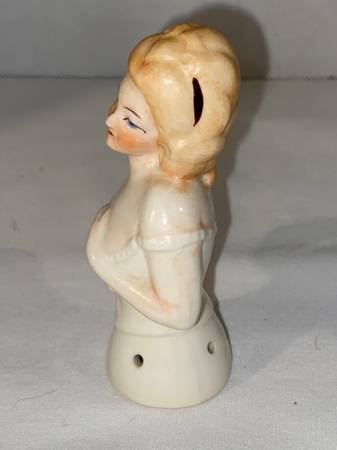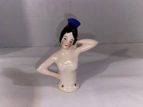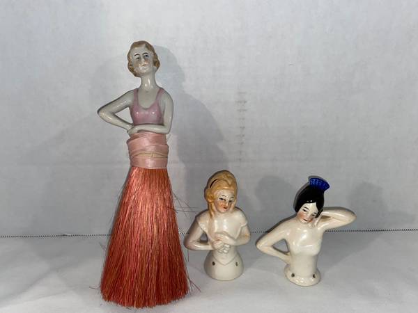(3) 1920's Vintage German Pin cushion 1/2 half Porcelain Doll 3.75". Stamped 4346 & 4347 Germany on the back. No visible chips or cracks but normal signs of color fading. The item is sold as is.