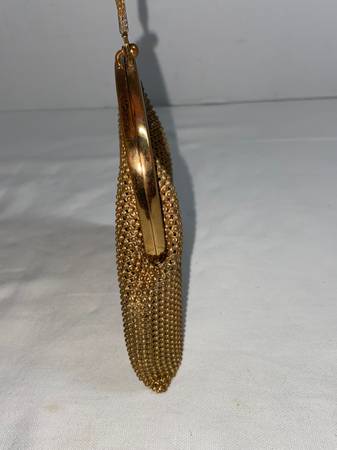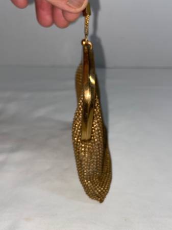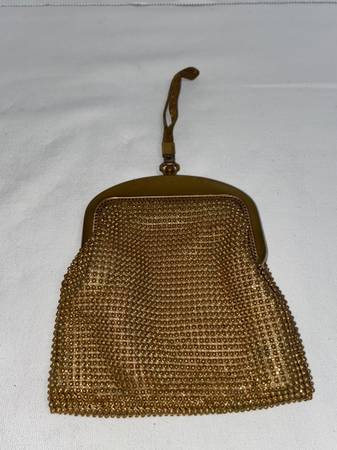 Vintage Mesh Whiting & Davis Gold Mesh Wrist-let Wrist Strap Clasp Evening Purse Bag. Made in the USA. In good pre-owned condition. Since this is a vintage item, there are signs of age ware/discoloration/scratches. The item is sold as is.