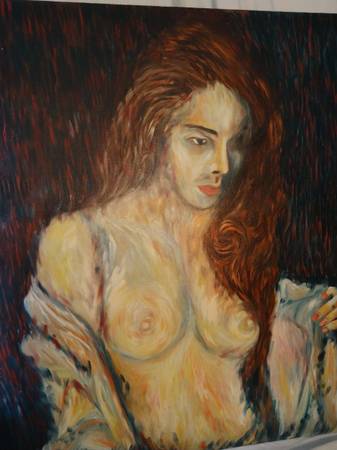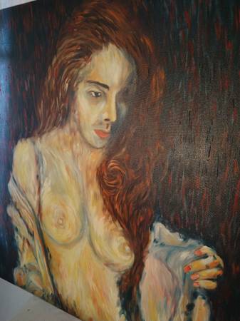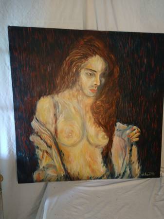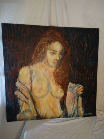 Great looking stunning listed artist Verdult Large OIL painting of A nude MODEL .Signed . small pinhole on scalp see pi in good condition. Will frame great!! It measures 36 by 36 inches unframed.