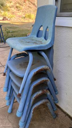 Five blue classroom chairs $10 each, five for $50. All need to go together. See photos. Need a good cleaning.