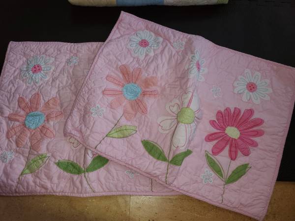 Pottery Barn bedding sets (1 set pink, 1 set Green) with matching accessories. 2 beautiful sets that were barely used by my daughters. The quilts spent more time in the closet than on their beds. We paid over $800 for each set