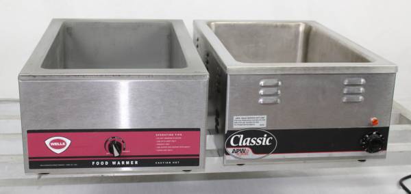Classic Apw Woyff & Wells Brand Food Warmers each measures 14.5"w x 22.5"l x 8.5" T Each Warmer has been tested and works. Comes with aluminum stand measuring 18" W x 48" L x 8.25" T Price...