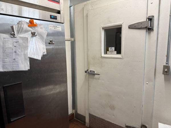 Kitchen is ready to produce-Walk in Cooler, large hood system,six burner stove, fryer, it's all here.