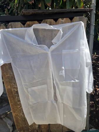 Lab Coat White Disposable Polypropylene 3 Buttons No Pocket Wholesale Lot 2XL elastic wrists, above knee, no latex 6 pack ......$20 30pack .....$50
