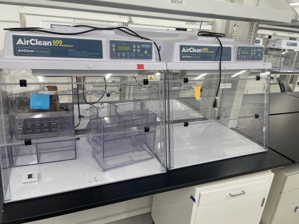 AirClean® Systems dead air boxes provide a circulation-free environment for the amplification and manipulation of DNA/RNA. Each dead air box is standard with the UVTect Microprocessor controller and a 254nm ultraviolet light source for irradiation between amplifications. A safety interlock switch disables the UV light when the sash is raised, preventing operator exposure. Use for mycology or other cleanroom application: cultivation, harvesting. Seamless design and UV-reflective construction materials further ensure no harmful UV energy escapes the enclosure.