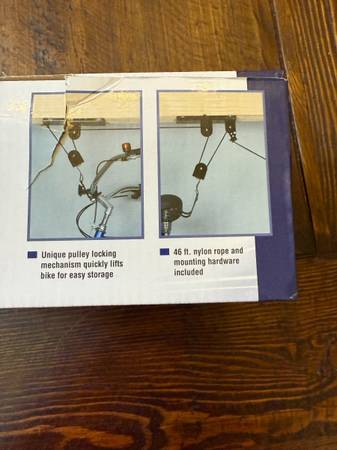 A unique pulley locking mechanism on this bicycle lift quickly hoists your bike for easy storage, giving you extra space in your garage. Mounting hardware and a 46 ft. nylon rope are included with the bicycle lift and set-up couldn’t be easier.