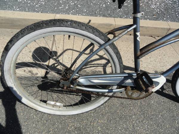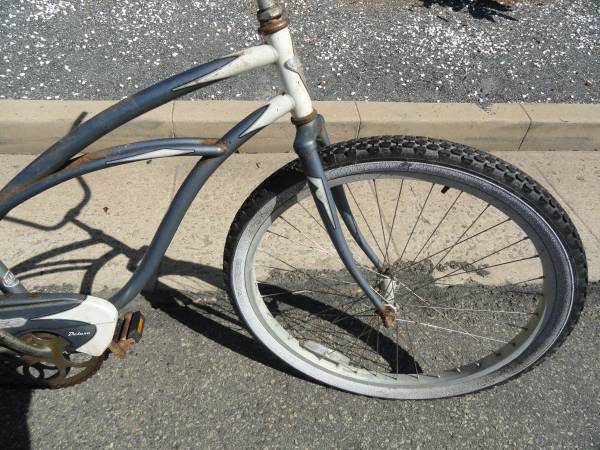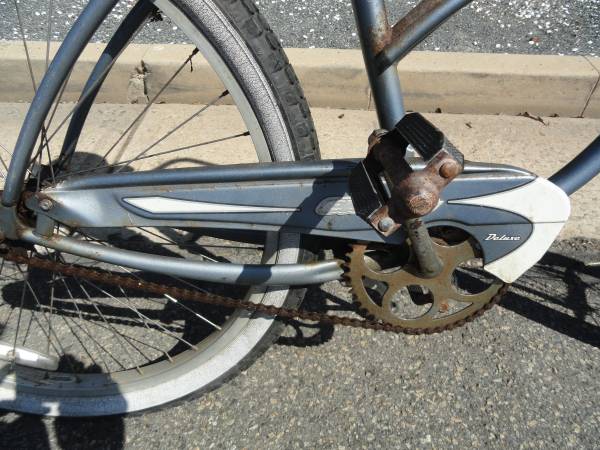 Bike, Electra, Deluxe, Men's Cruiser. Single Speed. Beach Beater. Rides down the road fine, but tires leak air. Some rust on frame. Tape on seat. 26" wheels. 18" frame. Deluxe Series. American...