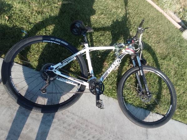 1500.00 OBO Giant mountain bike Talon men's bike frame Large. Color is black & white with 29" tire. The bike is has super low gears to make it up steap hills. I switched the seat for a a bigger seat for a little more cushion, however I have the other a mountain bike original seat...that will go with the bike. I have chains and lock as well....expensive bike so you want to make sure keep it safe.