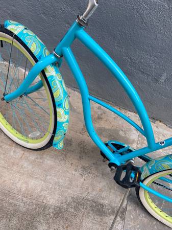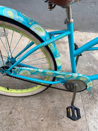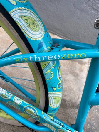 Beach Cruiser Bike Six Three Zero Women's 17" The rim size is 26. Coaster brake Clean. Rides nice. Has some minor scuffs and scratches and a few small paint chips here and there. Both tires are ok.