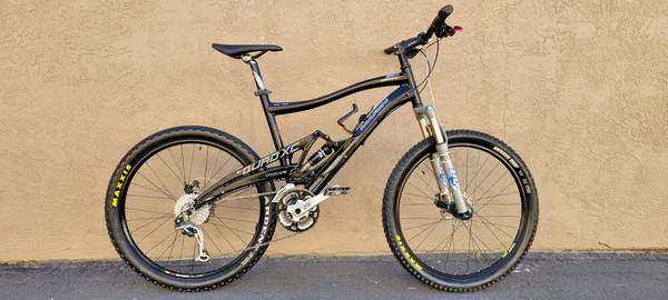 It features a Fox Talas RL front suspension and a Fox Float R rear Shock, both working perfectly. The front suspension locks out completely and performs smoothly on all terrains.