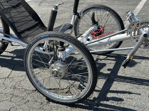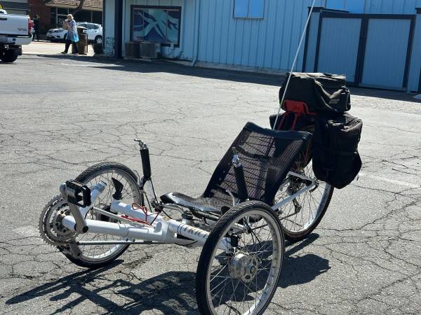 No trades. This is a very high quality well built recumbent trike. The bike is ready for its next adventure. All components are quality and front tires/tubes have recently been replaced. This is not a walmart bike. Super comfortable riding position and lots of fun! Comes with everything you see including the rack and cargo bags/ neon flag.