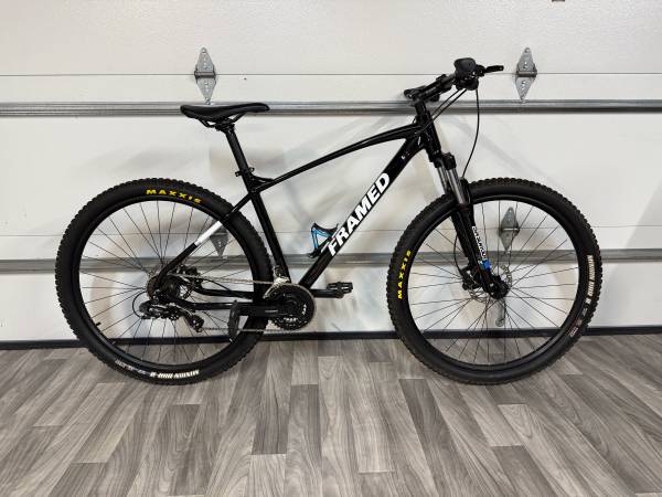 Framed mountain bike, size medium in excellent condition. Purchased and ridden two or three times, then moved to an e-bike. Upgrades include: carbon water bottle cage and Maxxis Minion DHR II's...