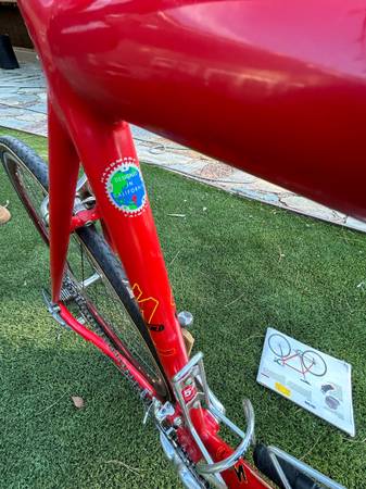 The 1999 Specialized Allez Comp is a triathlon/road bike with an aluminum Specialized A1 frame. The frame has a Team red finish.