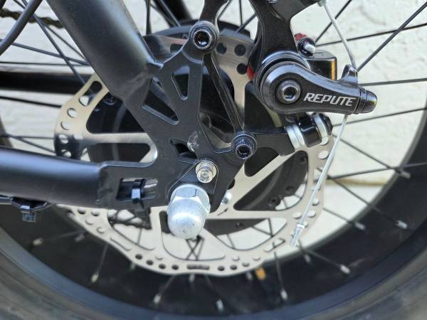 New portable ebike. This was purchased for a trip that was cancelled and the bike has been gathering dust. It has folding handlebars, quick release seatpost, rack, disc brakes, easy to read screen, 4" tires, good front suspension, comfortable seat, and plenty of torque.