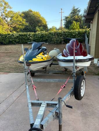 Two jetskis, both in great condition, with covers. Previously garaged, only fresh water. Run great, new batteries! Forced to sell. 1. 2001 Yamaha XL 700, 3 Seater (ability to pull tube/skier), flag...