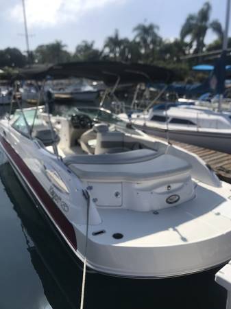 The Passenger capacity is 14 on this deck boat, with the open bow and larger sun pad on the stern, there's plenty of room for everyone.