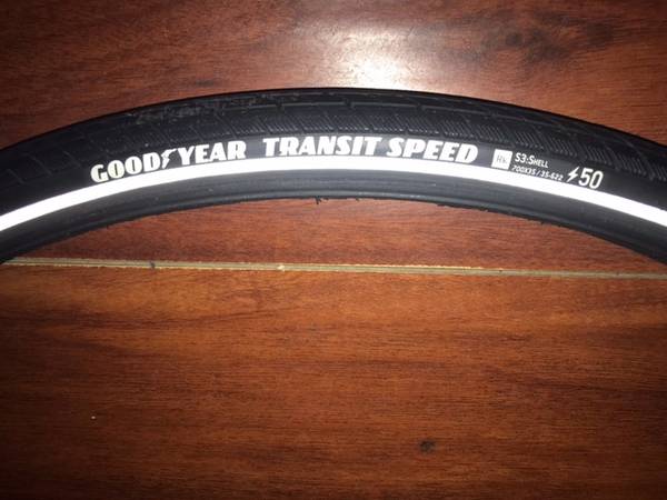 Goodyear Transit Speed tire with reflective stripes. Good size for hybrid bikes. Almost new, Cost $40, sell for $10.