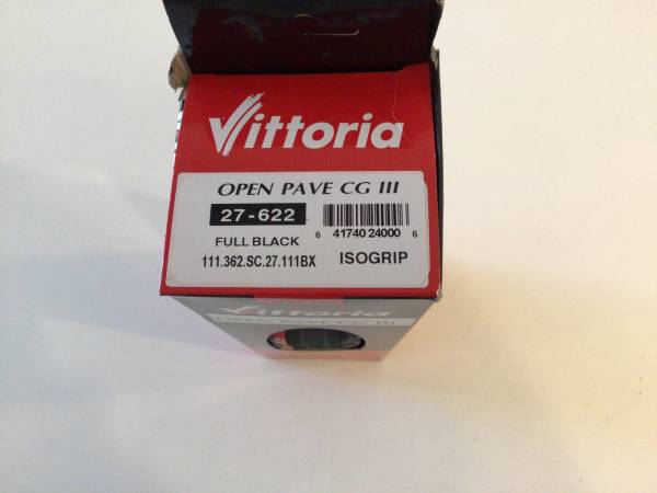 Brand new VITTORIA OPEN PAVE CG III (27-622), 700x27mm clincher tire. Full Black. ISO-Grip. Never mounted or used. Single tire only available. Price $45.