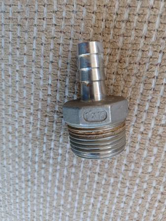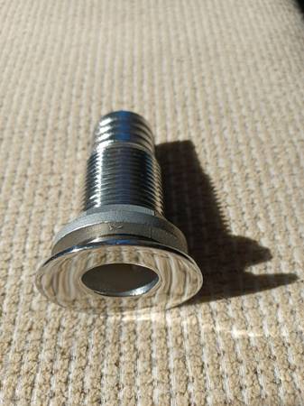 Thru hull fittings 316 SS polished fits 1 1/2" id hose. $25 1" mushroom head almost flush great for deck drain $16 304 SS 1"npt 1/2" hose barb fitting $12 1"NPT threaded T $10. boat yacht stainless...