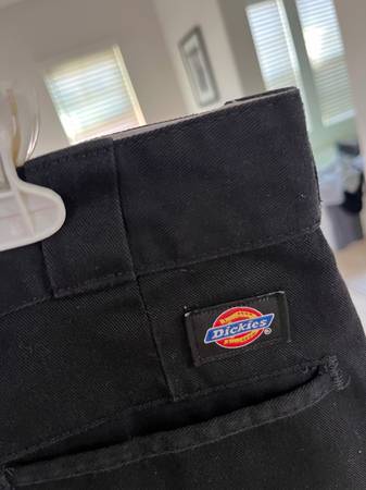 Dickies Brand Black Straight Leg Pants - Size 28 - great condition with 1 hole on the bottom of the right front leg.