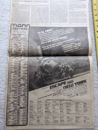eye of the needle 1981 ad art newspaper escape from new york kurt russell theater