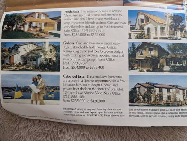 mission viejo ca 1982 ad history home price sheet lake art brochure map photo