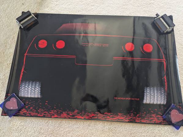 new 36" corvette poster wall art red michelin sport xgt plus 1984 racing chevy
