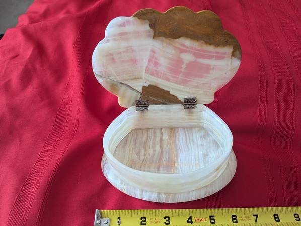Shell Shaped Decorative Box stone marble carved art seashell lid surf ocean jewelry