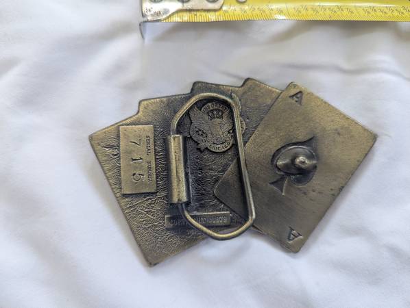 Vintage Belt Buckle Brass Poker ROYAL FLUSH 1979 GREAT AMERICAN chicago il art