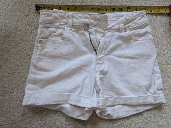 White Denim Shorts american eagle stretch size 0 booty girls cute summer shorty